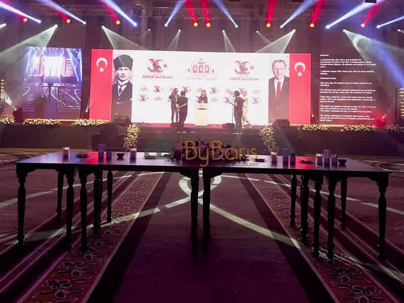 By Barış Organizasyon olarak, 30 Ağustos Zafer Bayramı’nı kutlamak için Hilton Bomonti Otel’de büyük bir etkinlik gerçekleştirdik. Bu anlamlı günü, katılımcılara en özel şekilde yaşatabilmek için her detayı titizlikle planladık. Otelin şık atmosferi, özenle hazırlanan dekorasyon ve ayrıntılarla birleşerek görsel bir şölen sundu.