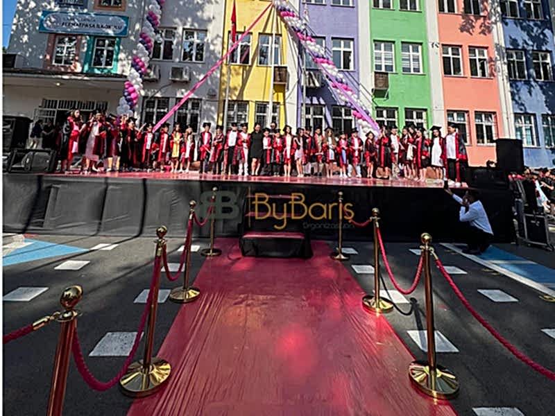 Kırmızı Halı Kiralama: Öğrenciler, törene kırmızı halıdan geçerek adeta yıldızlar gibi yürüdü.