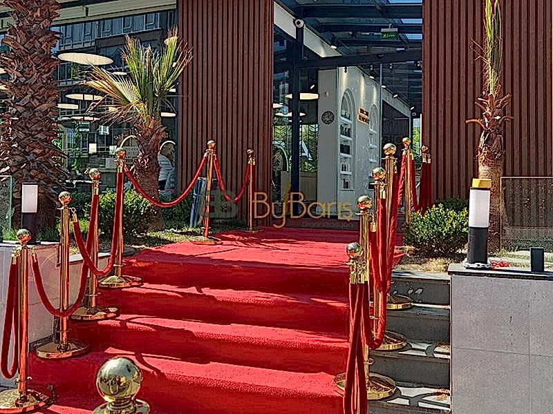 Katılımcıların etkinliğe girişini şıklıkla taçlandırmak için kırmızı halı dekoru kullandık. Her bir misafir, etkinliğe adım attığında özel hissederek unutulmaz bir deneyim yaşadı.Pirinç Bariyer Kiralama: