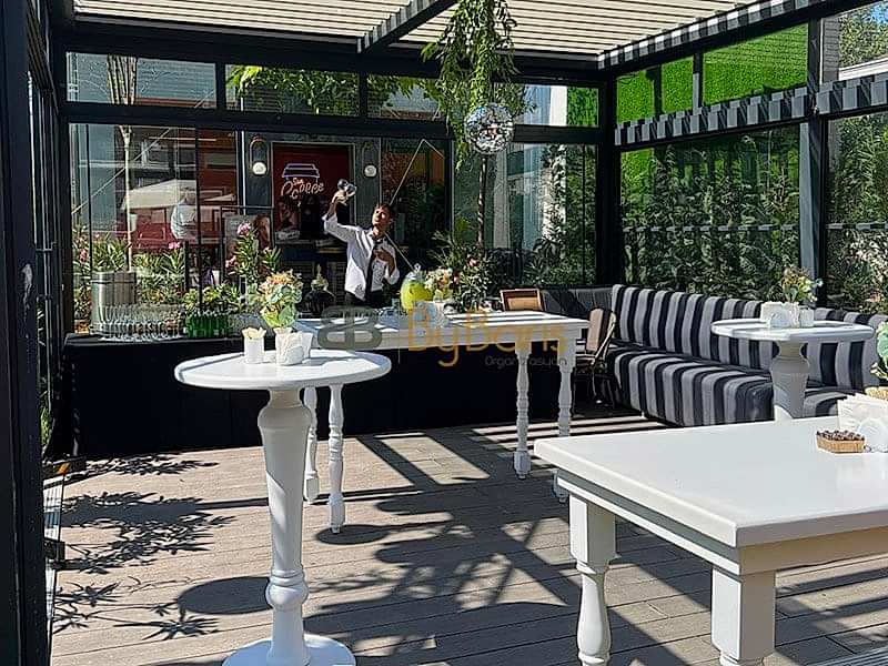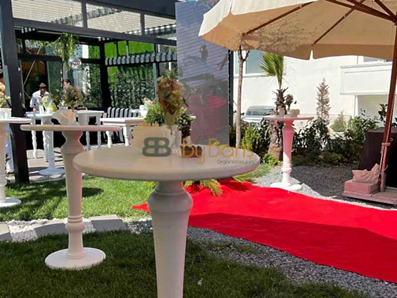 Etkinlik alanındaki oturma düzenini şıklık ve zarafetle tamamlamak adına lake bistro masaları kiraladık. Hem estetik hem de fonksiyonel bir kullanım sağlayarak misafirlerin konforunu sağladık.Lake Kokteyl Masası: