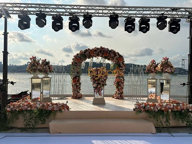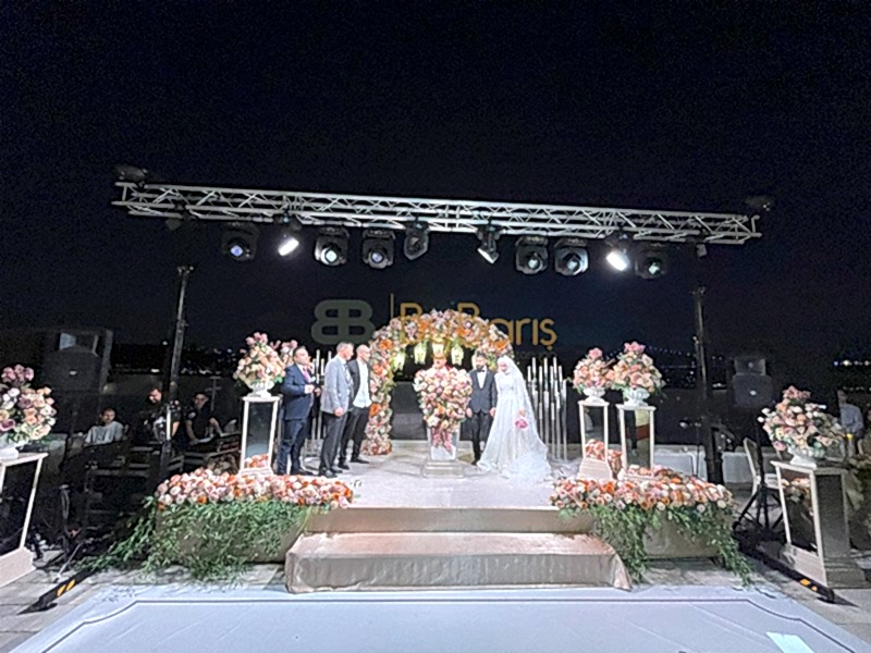 Işık ve Ses Sistemi: Düğün boyunca profesyonel ses ve ışık sistemleri ile müzik, aydınlatma ve görsel şovları mükemmel bir şekilde harmanladık. Işıltılı ışıklarla geceyi daha da özel hale getirdik.