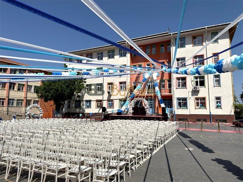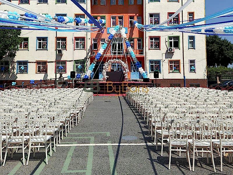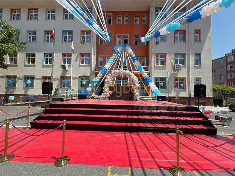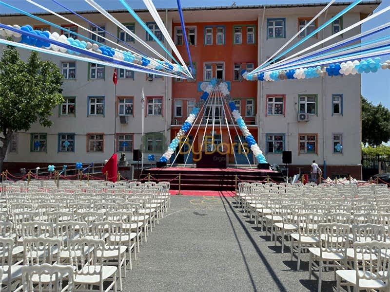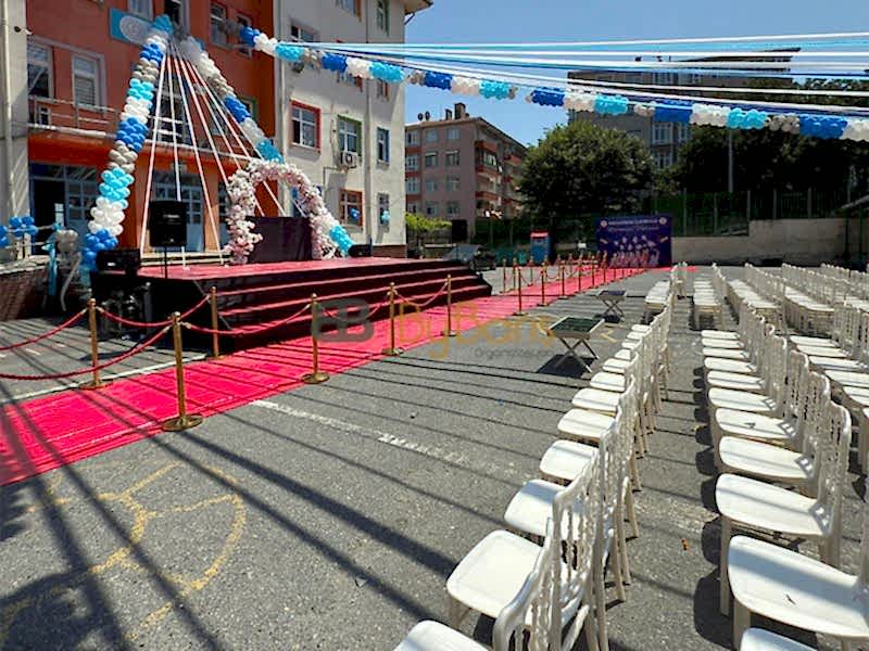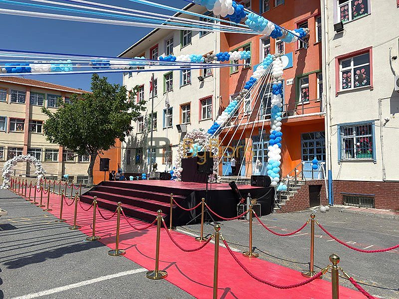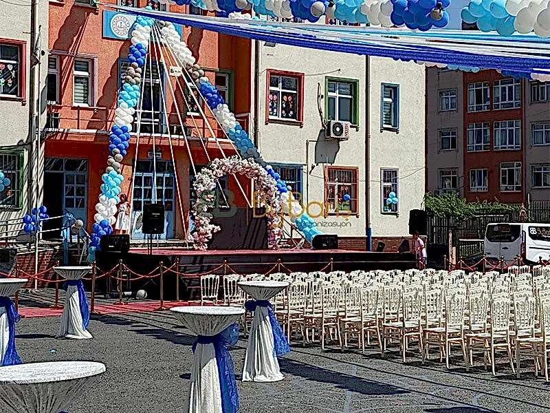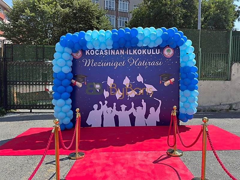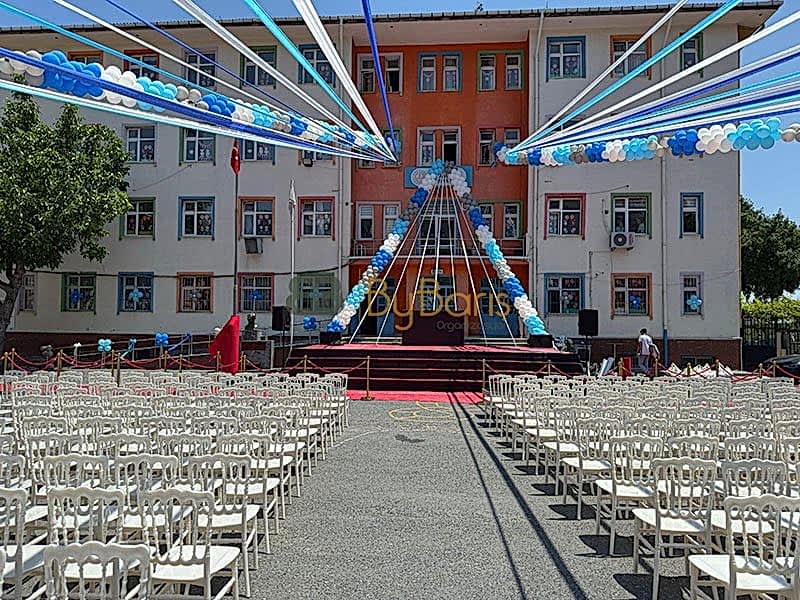Balon süslemesi: Renkli ve şık balonlar, tören alanını görsel olarak canlandırır.