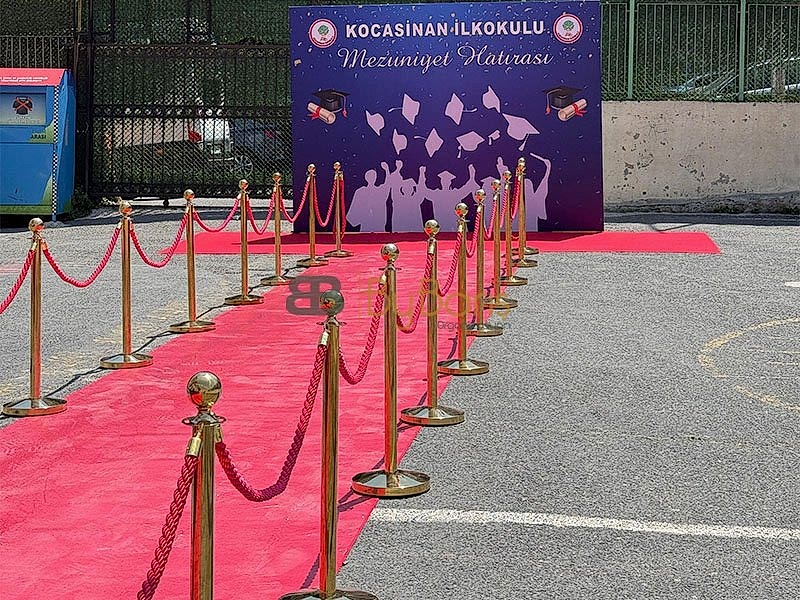Kırmızı halı kaplama: Mezunları özel hissettiren klasik detaydır.