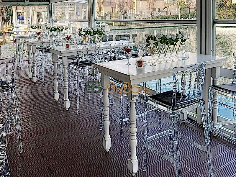Lake Dikdörtgen Bistro Masa Kiralama: Yine şıklığı ön planda tutarak, lake dikdörtgen bistro masalar kiraladık. Bu masa düzeni, hem estetik açıdan hem de konfor açısından etkinliğe değer kattı.
